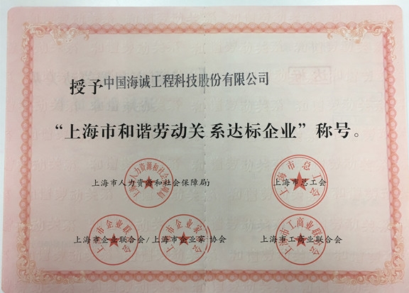 日前,公司获得由上海市协调劳动关系三方(市人社局、市总工会、市企业联合会、市工商联)联合颁布的2017年度“上海市和谐劳动关系达标企业” 称号。