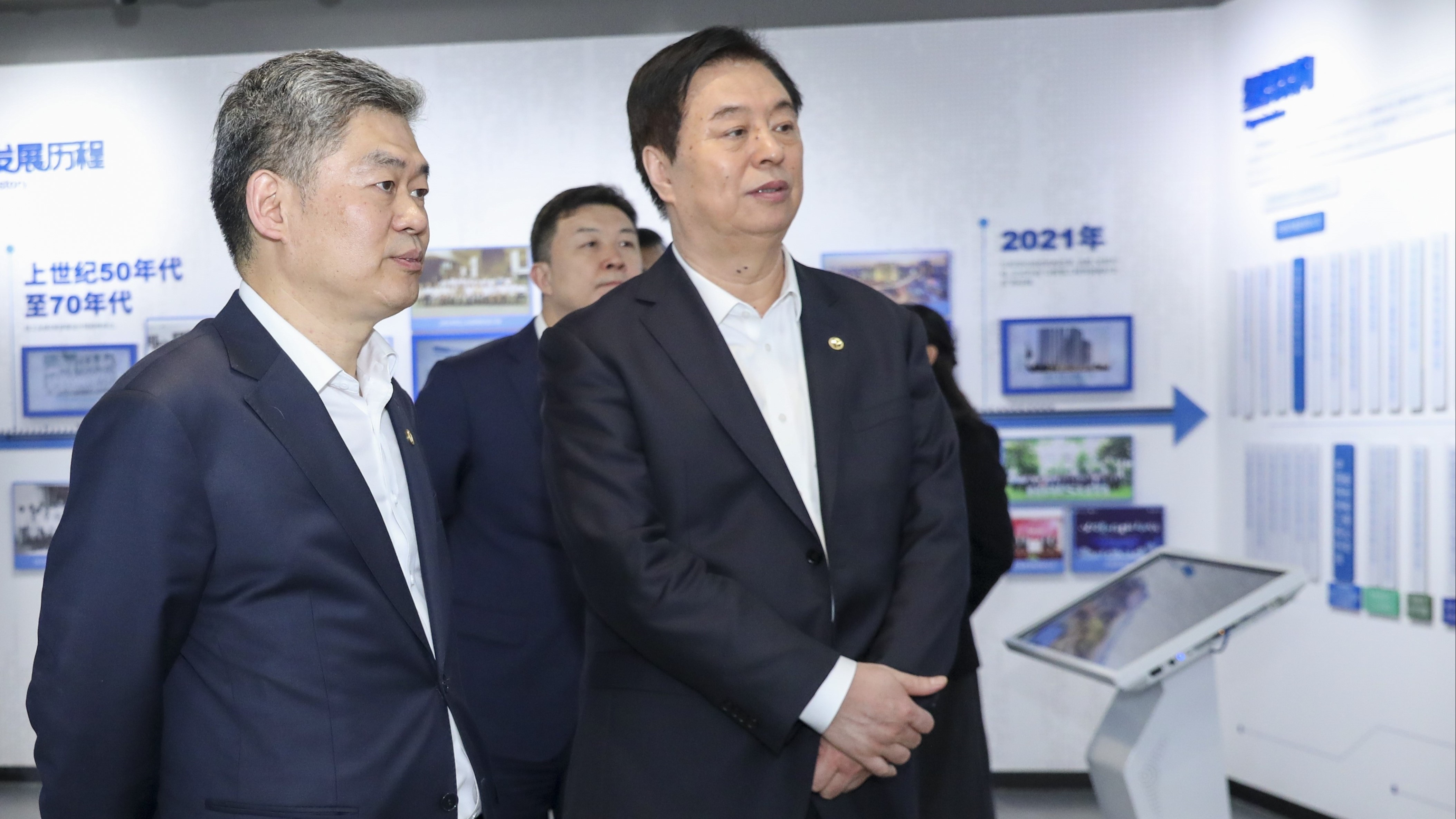 会前,刘化龙一行参观了威廉希尔中国官网品牌展示馆和“EIM数创中心”,详细了解了威廉希尔中国官网的历史沿革、主营业务、工程案例、党建工作、数字化转型等情况。