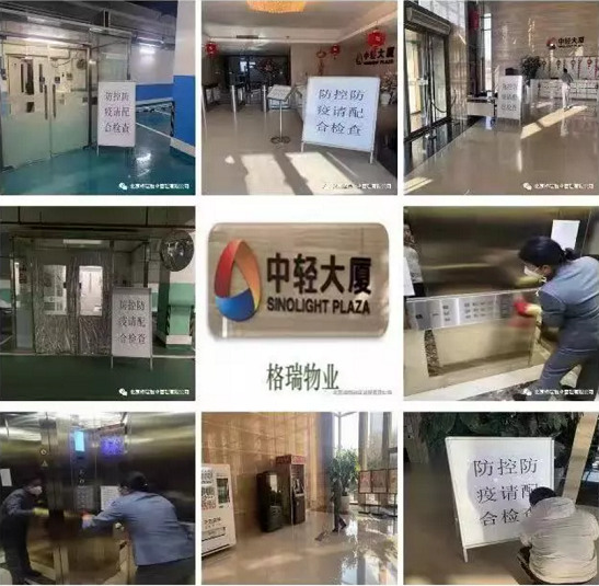 *中轻大厦保持新风系统全开,每天定时消毒空调滤网、公共区域及门把手,对楼道进行开窗通风。
